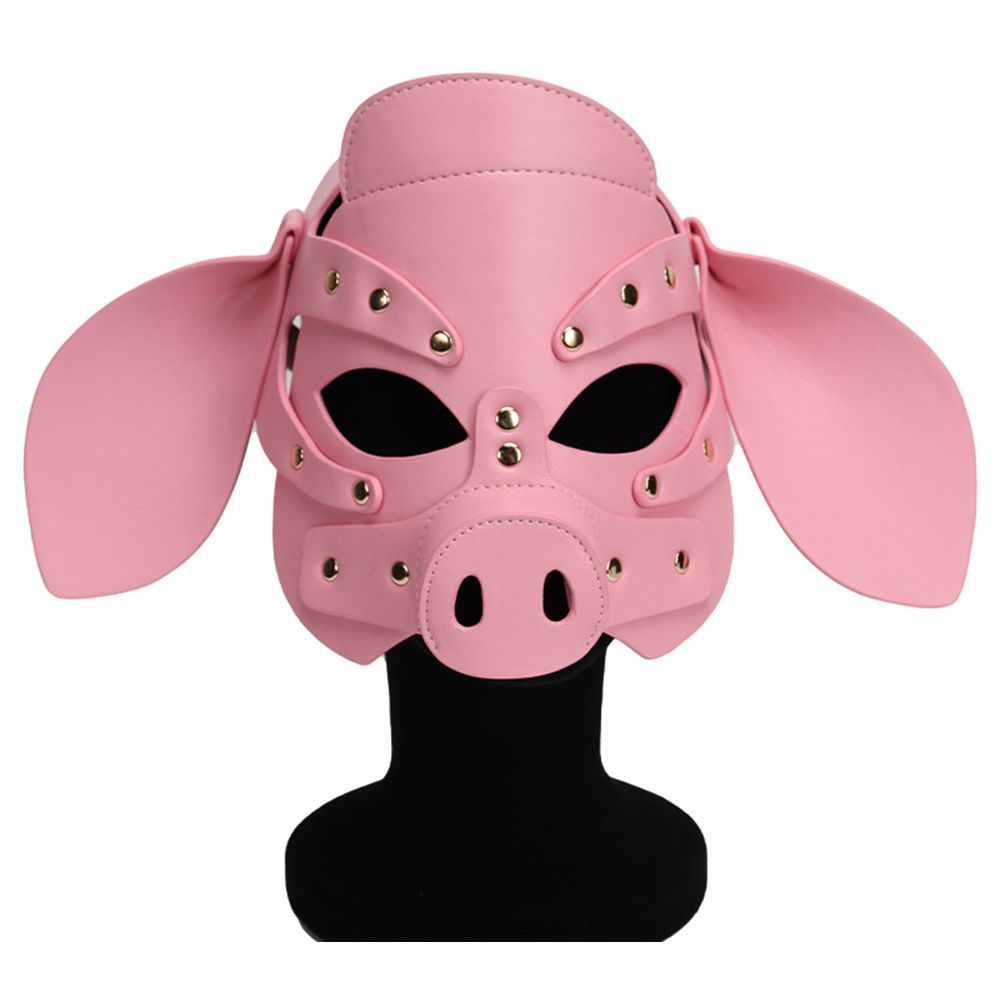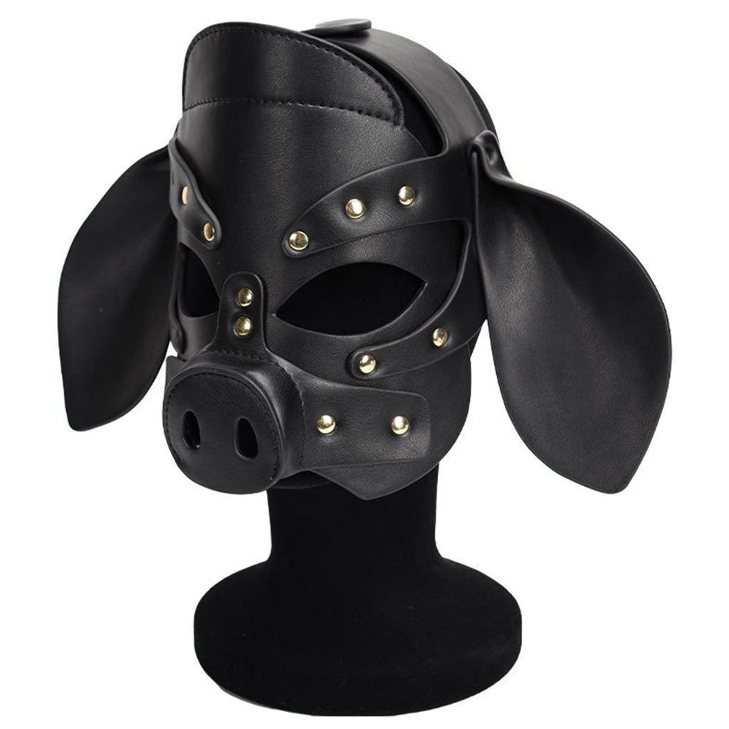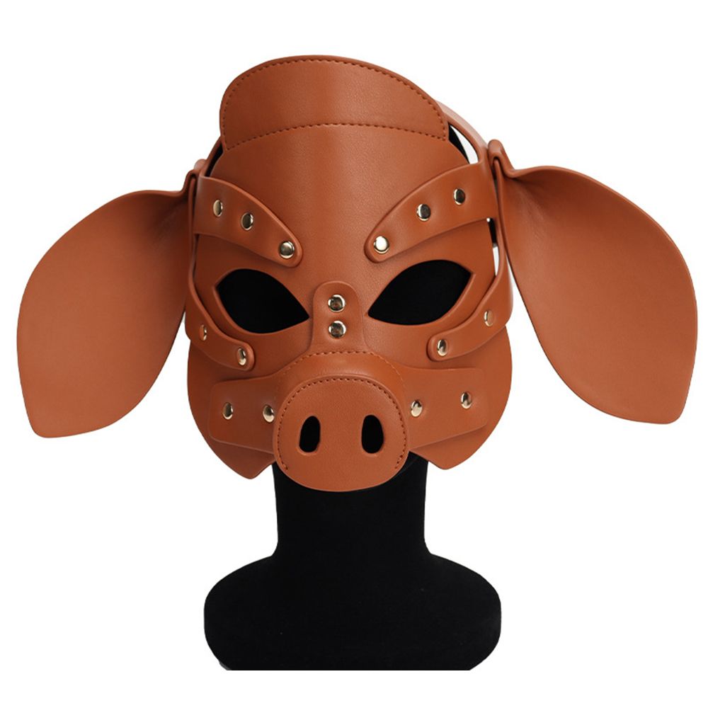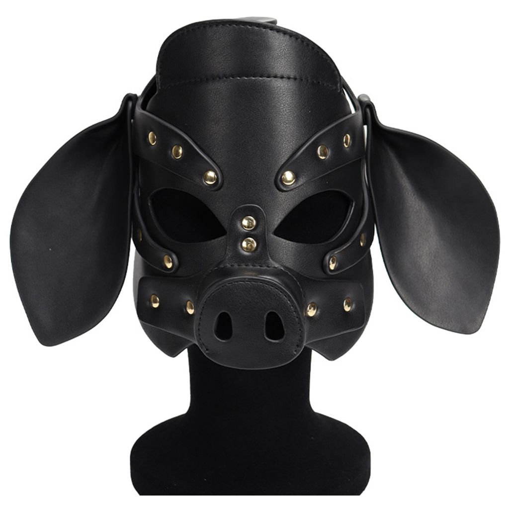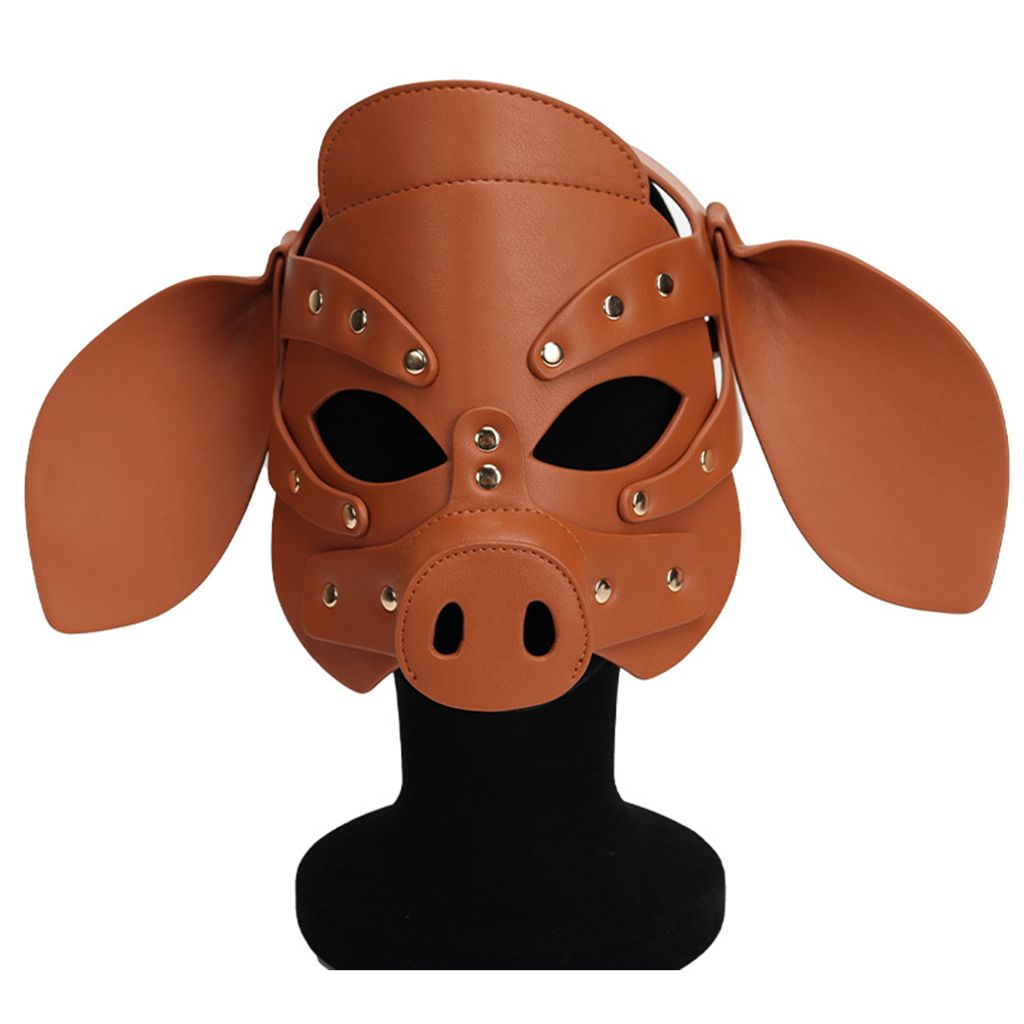 Adults PU Leather Pig Hood Mask, Cosplay Pig Full Face Pullet Hood Mask