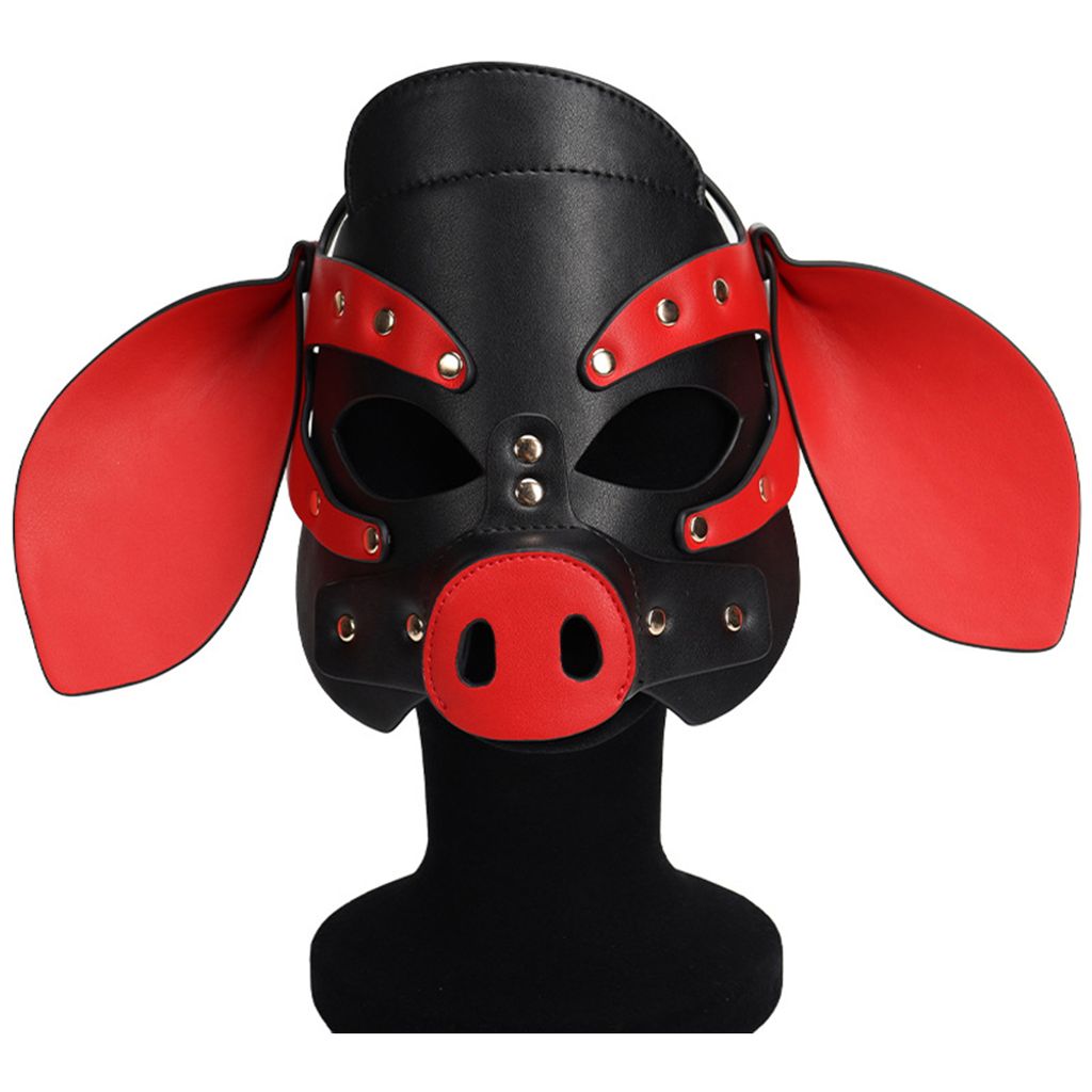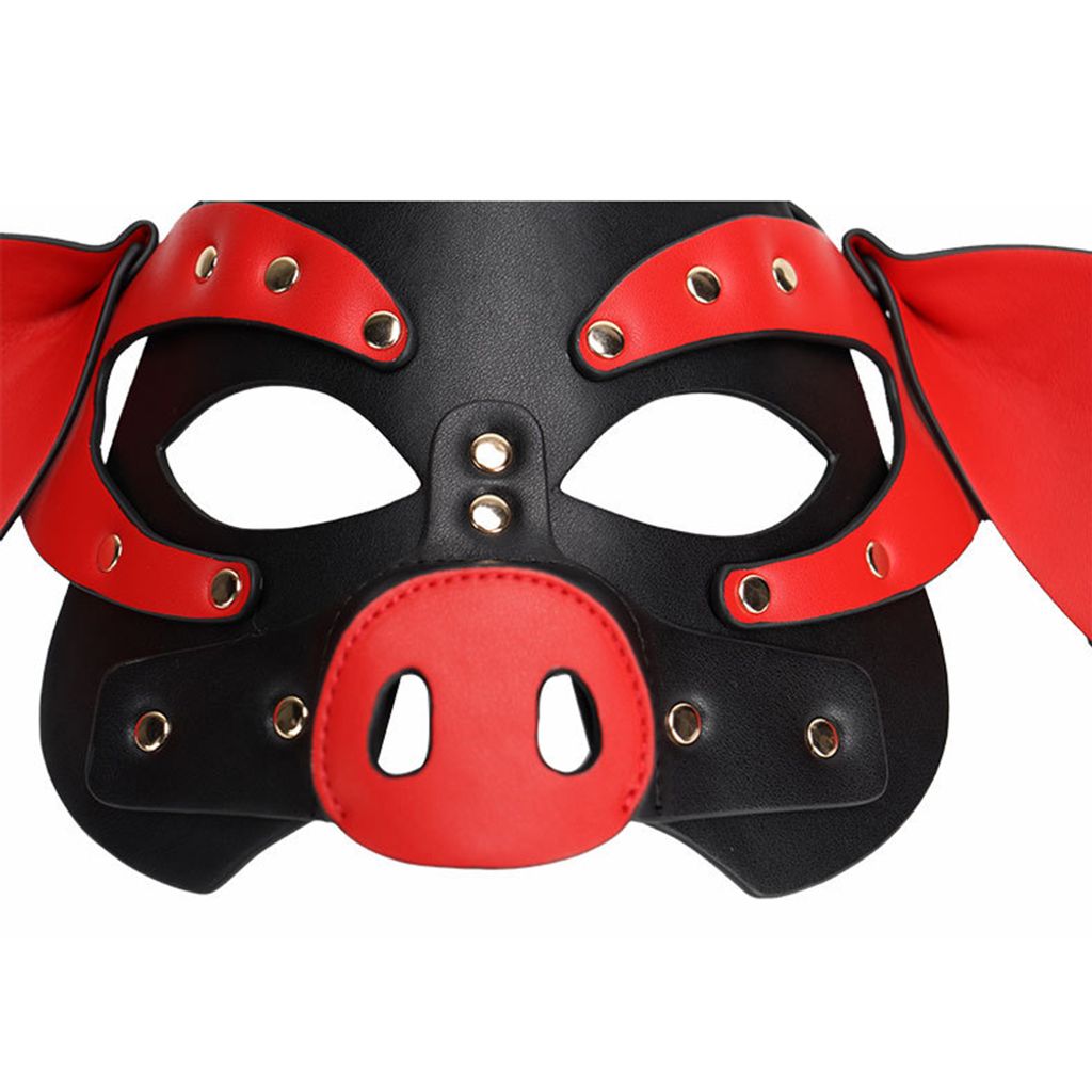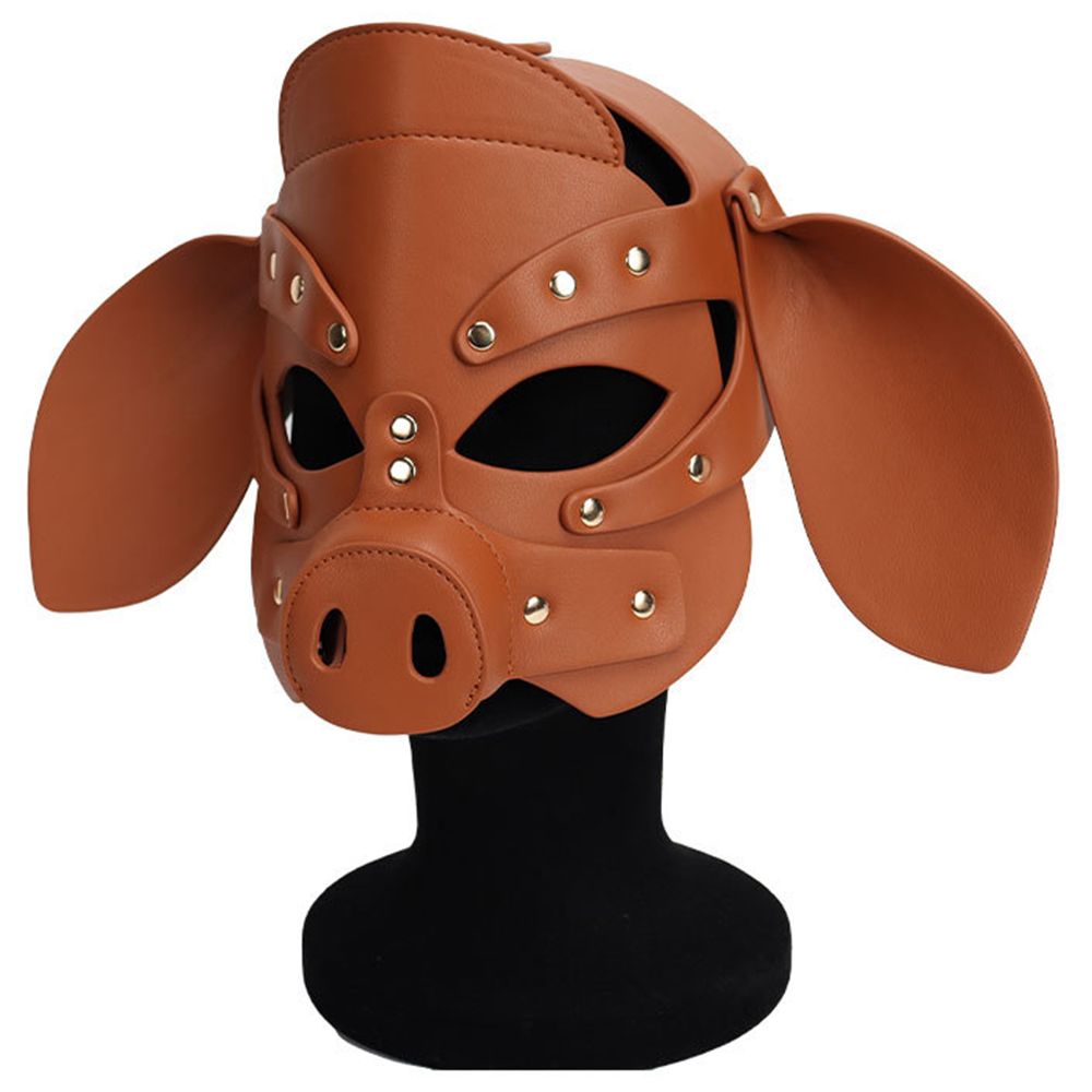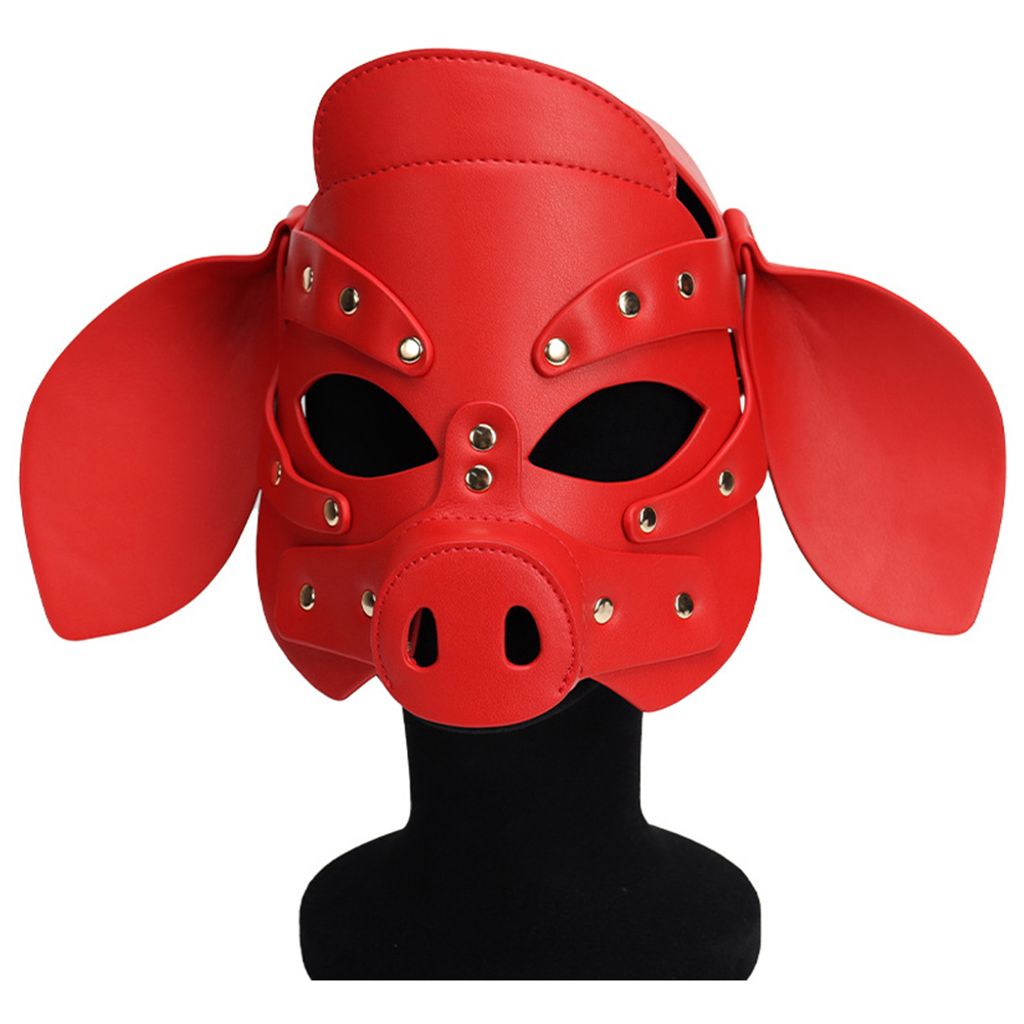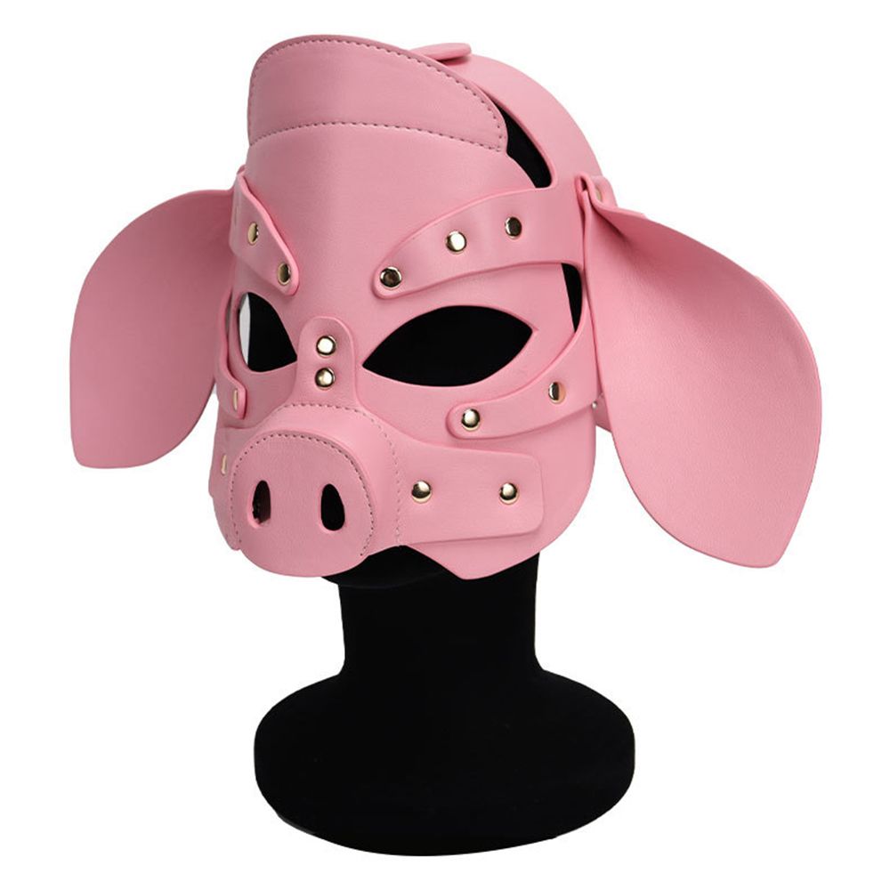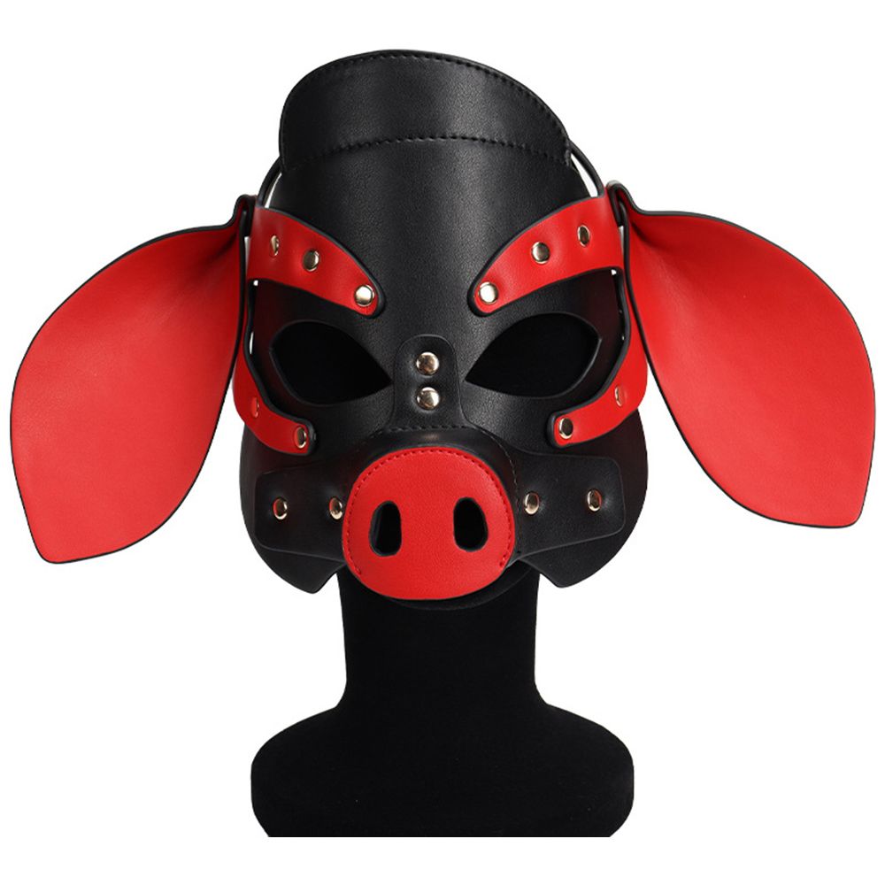 Adults PU Leather Pig Hood Mask, Cosplay Pig Full Face Pullet Hood Mask