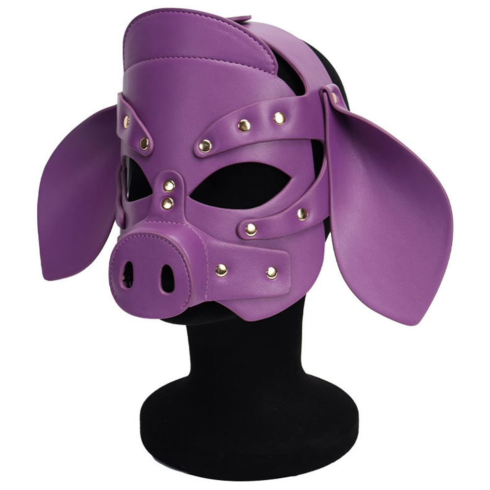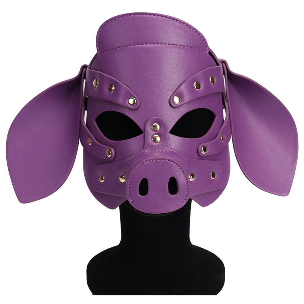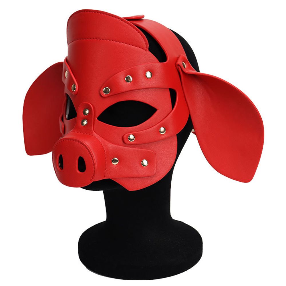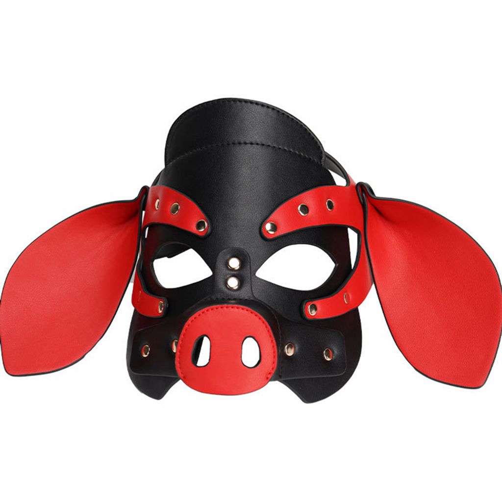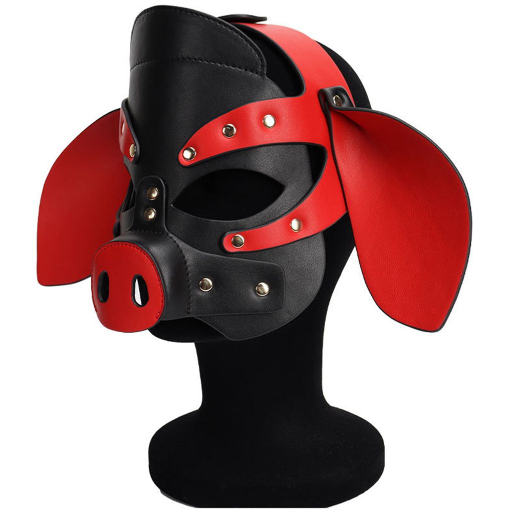 Adults PU Leather Pig Hood Mask, Cosplay Pig Full Face Pullet Hood Mask