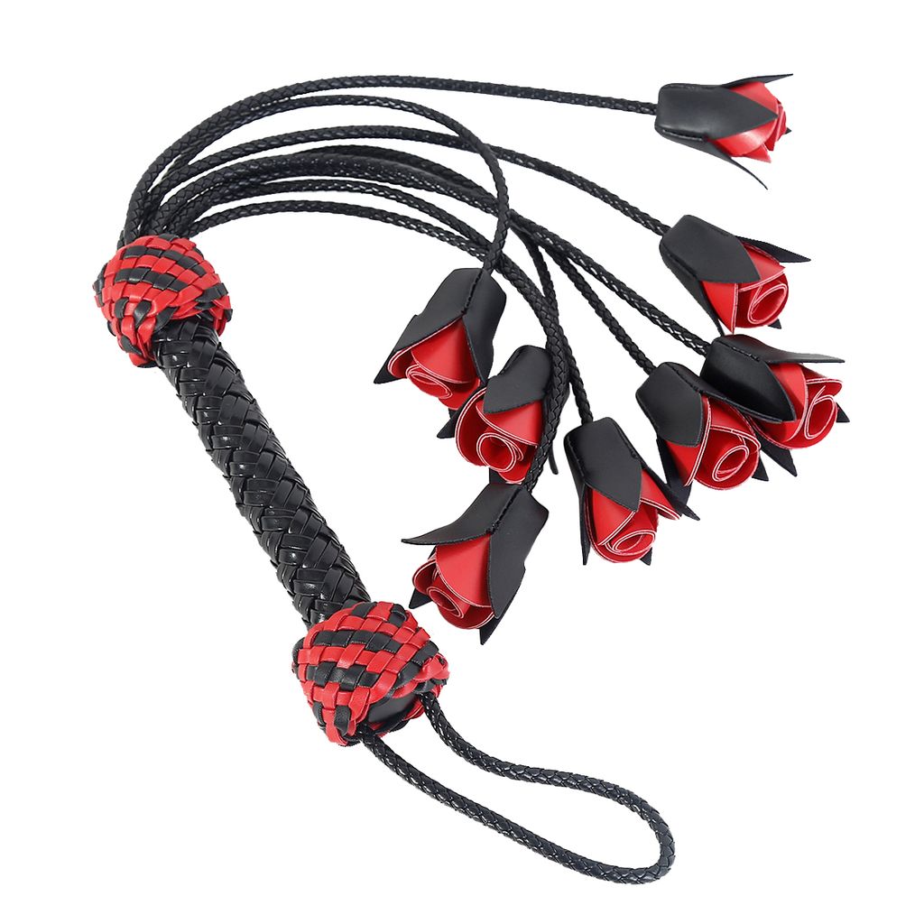 RED ROSE WHIP - The whip consists of 8 roses, all hand-woven.The whip horse lash is of superior length and thickness for light tickles and sharp lashes.
