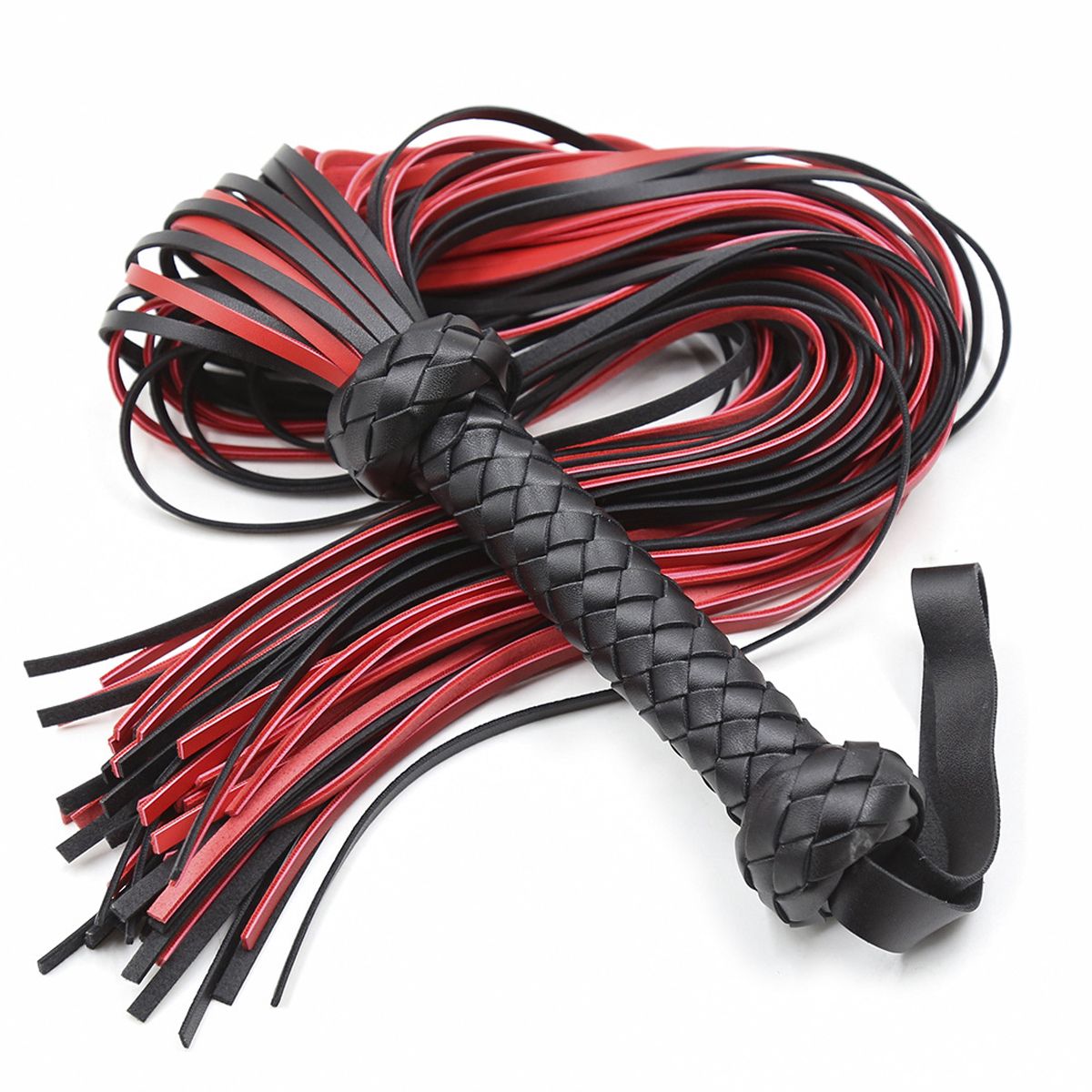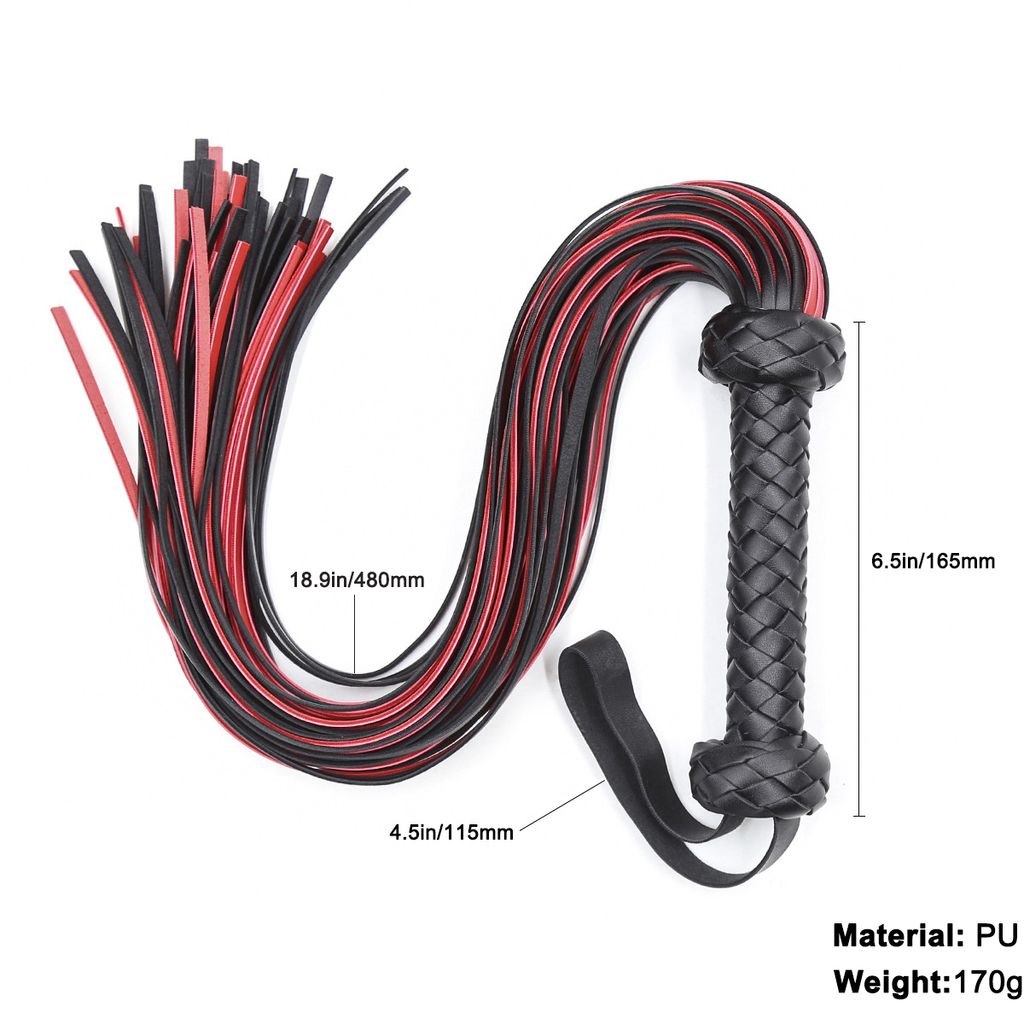 BLACK/RED WHIP - The whip horse lash is of superior length and thickness for light tickles and sharp lashes.